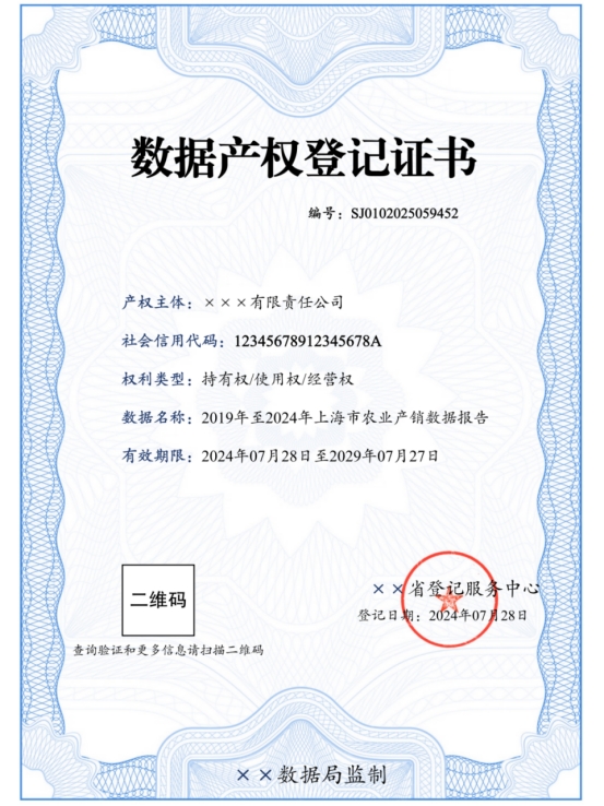 数据产权登记凭证样例