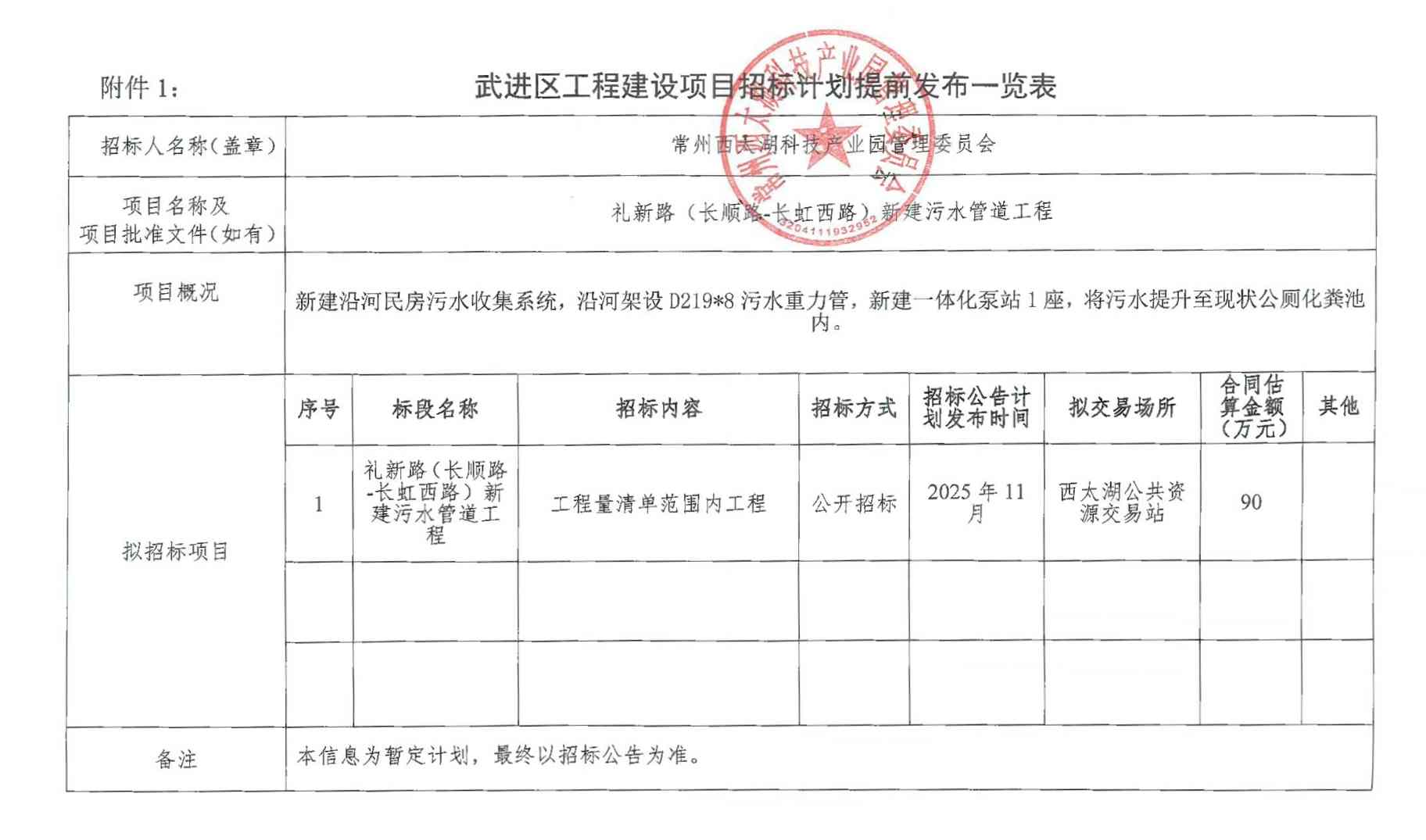 礼新路(长顺路-长虹西路)新建污水管道工程招标计划