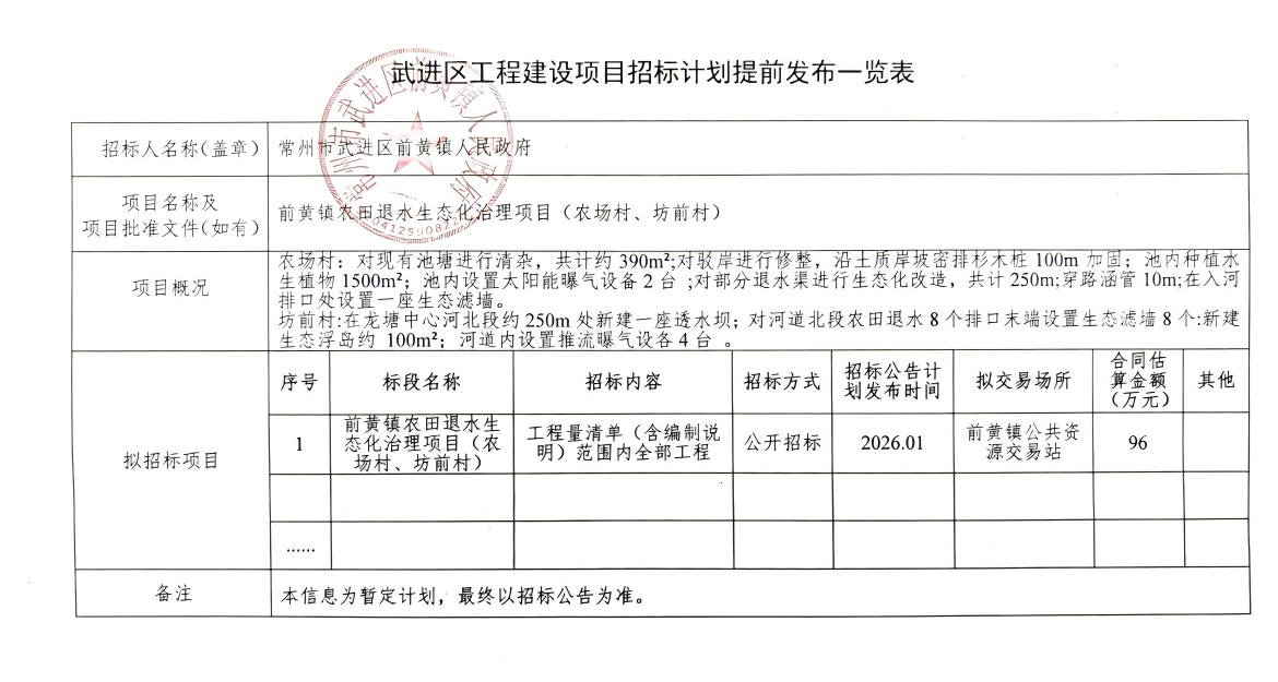 前黄镇农田退水生态化治理项目(农场村、坊前村)