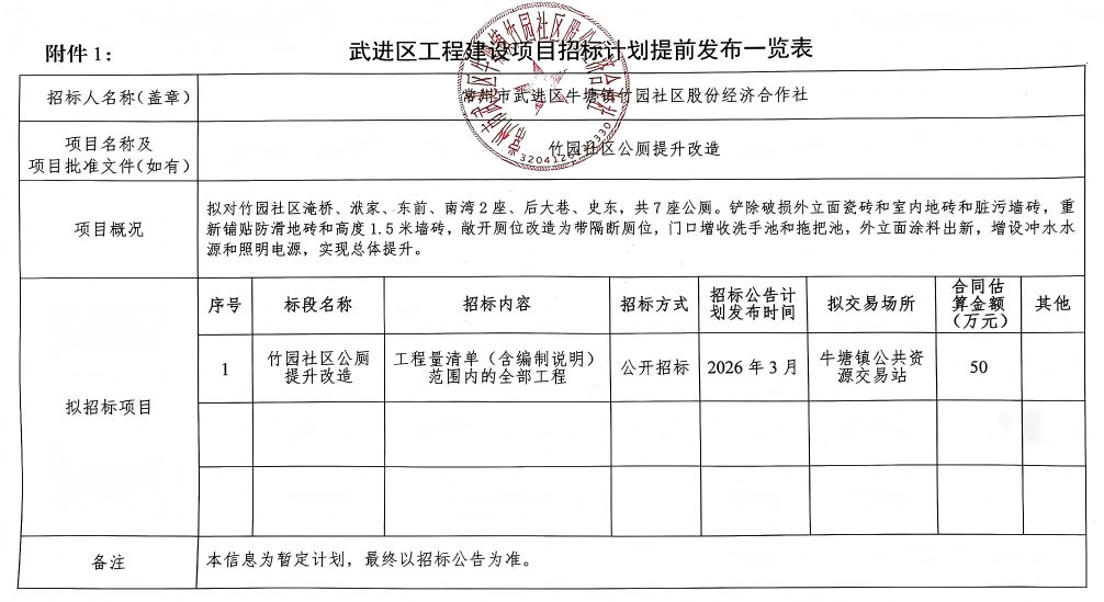 竹园社区公厕提升改造招标计划